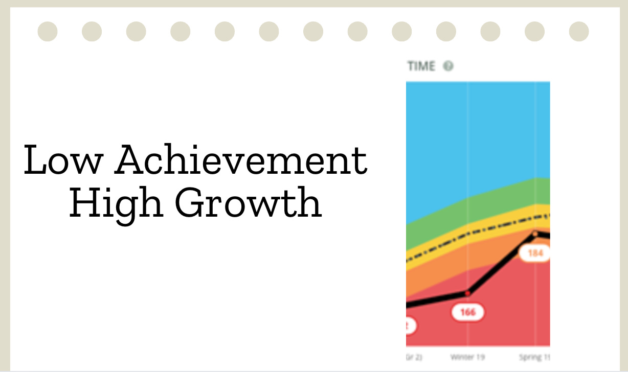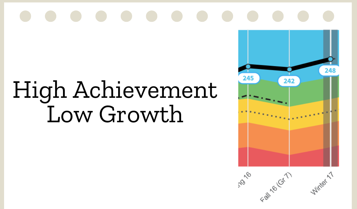 Another aspect of success often surfaces when looking at benchmark testing scores. Are students successful if they have high achievement or high growth? Do they need both? Perhaps you’ve seen either of these situations: