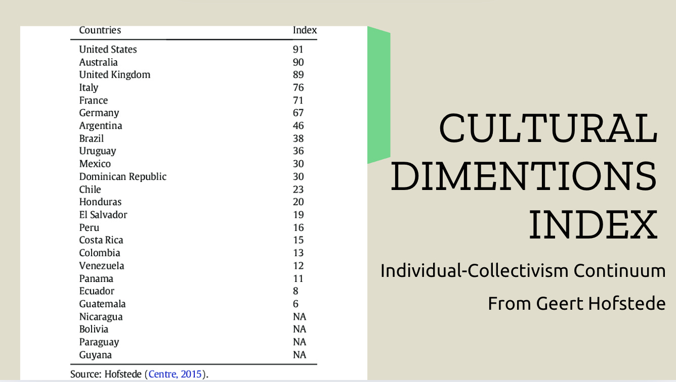 Based on research by Geert Hofstede, the United States ranks pretty high on their index indicating a higher importance placed on the individual. So, often, in the U.S., individual achievement is associated with success. But perhaps collectivism is something you value, or maybe it’s more valued in the culture of some or many of your students? There is more than one way of being, and recognizing and appreciating that is part of being culturally responsive.